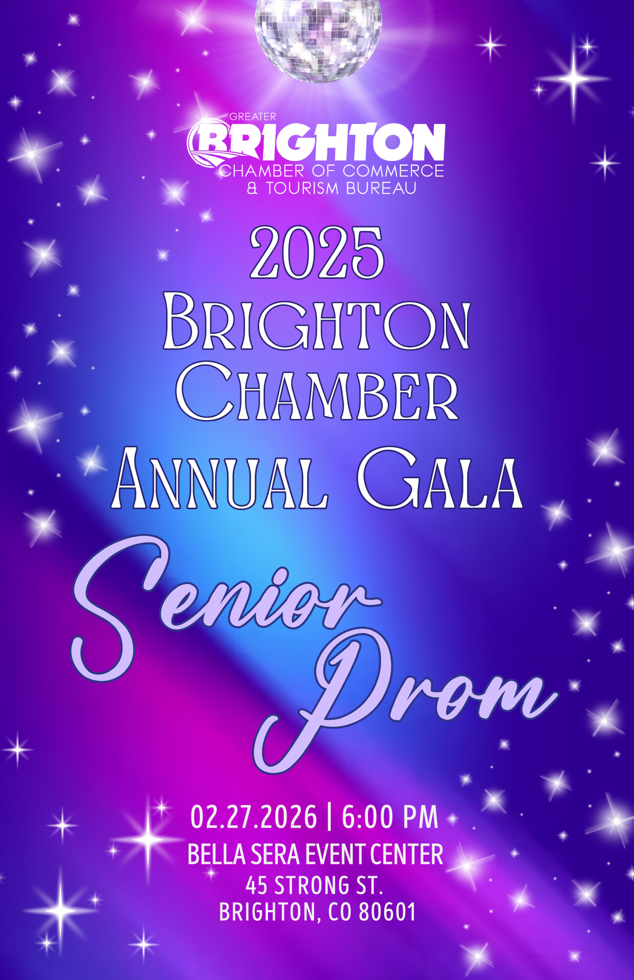 Get ready to relive prom night — Chamber-style! Join us for the 2025 Brighton Chamber Gala: Senior Prom on Friday, February 27, 2026, starting at 6:00 p.m. at the beautiful Bella Sera Event Center in Brighton.
